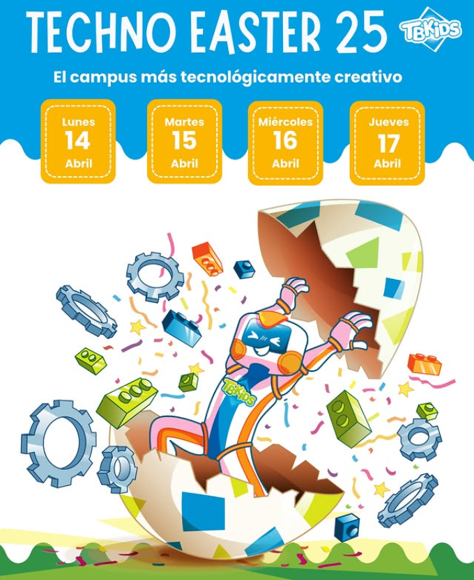 - TbKids: Techno Easter – Actividades creativas donde los asistentes construirán en un entorno seguro y divertido. Cada día se usarán tecnologías diferentes, adaptando la dificultad de los retos al nivel de cada grupo. Una aventura tecnológica para descubrir el poder de la naturaleza. Del 11 al 21 de abril desde los 4 hasta los 16 años. Más información.