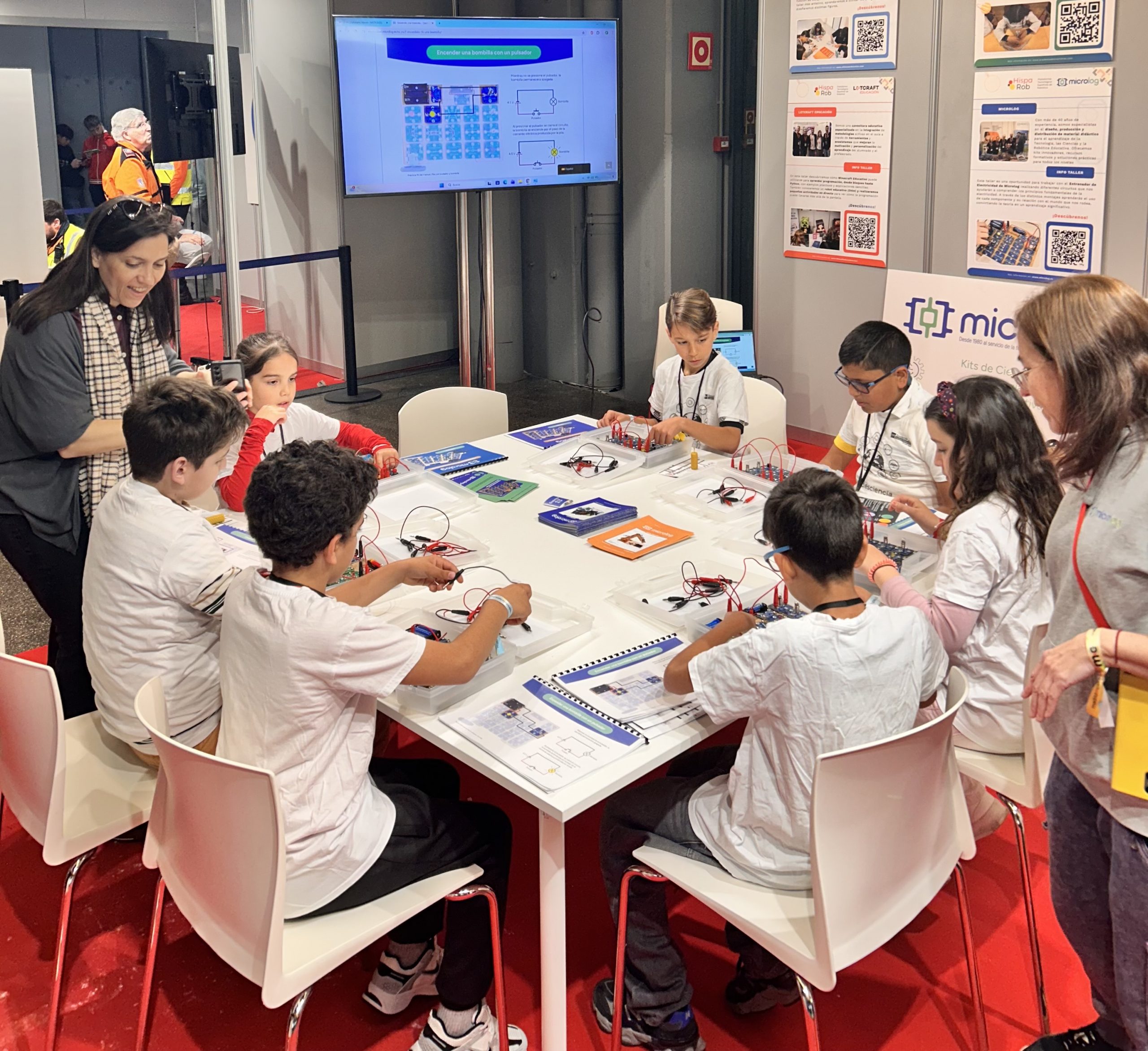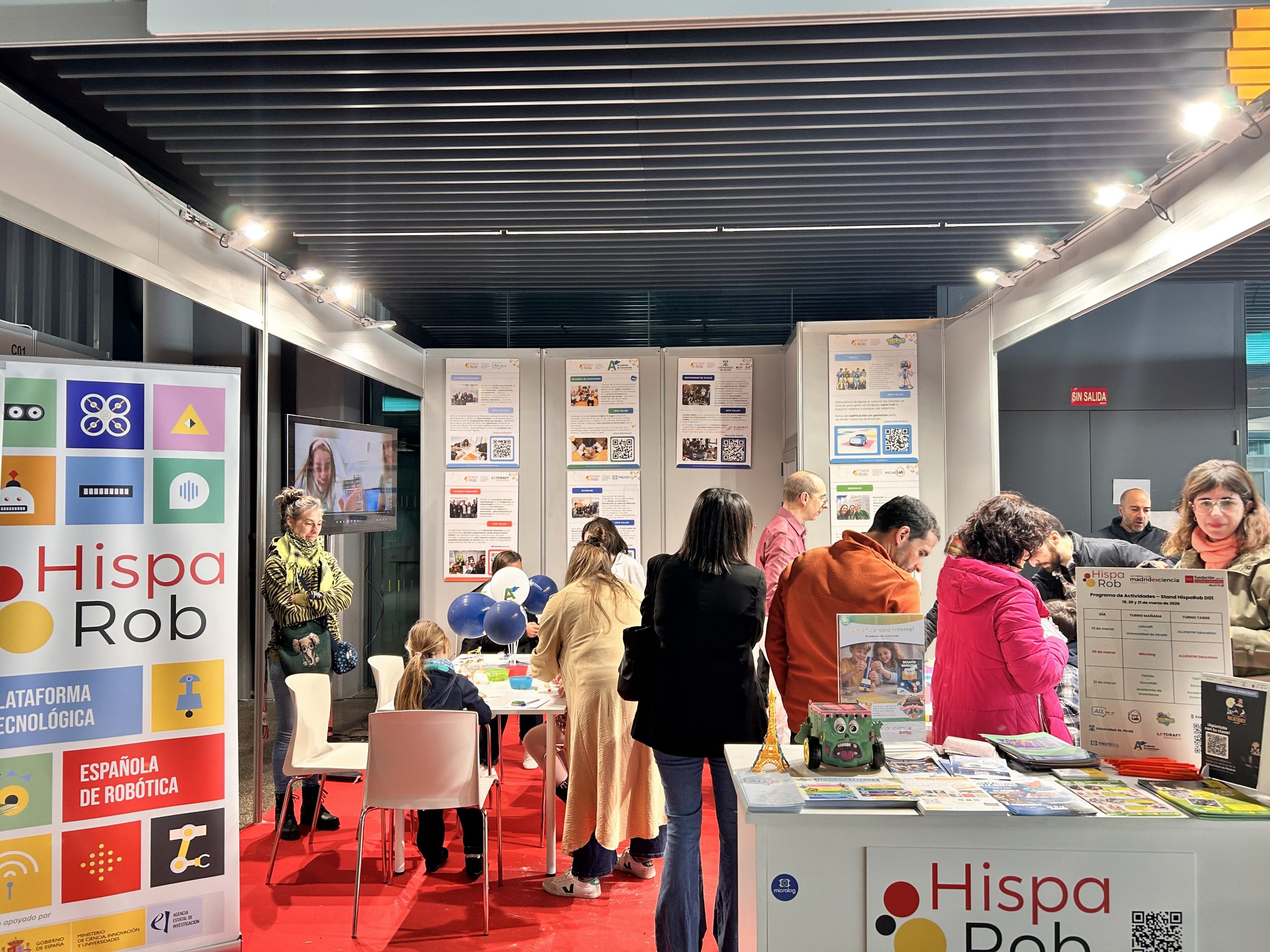 Las entidades del ecosistema de Robótica Educativa de HispaRob —Letcraft, Universidad de Alcalá, ALLKNOW Education, Microlog, Escuelab, Academia de Inventores y TbKids— fueron las responsables de impartir los talleres y dinamizar las actividades del stand, compartiendo su experiencia y propuestas metodológicas para acercar la tecnología de forma amena y participativa. Alumnos y alumnas de todas las edades pasaron por el stand D01 de HispaRob, participando en talleres de ciencia, robótica para todas las edades, electrónica y circuitos, además de demostraciones y actividades que disfrutaron durante tres dias.