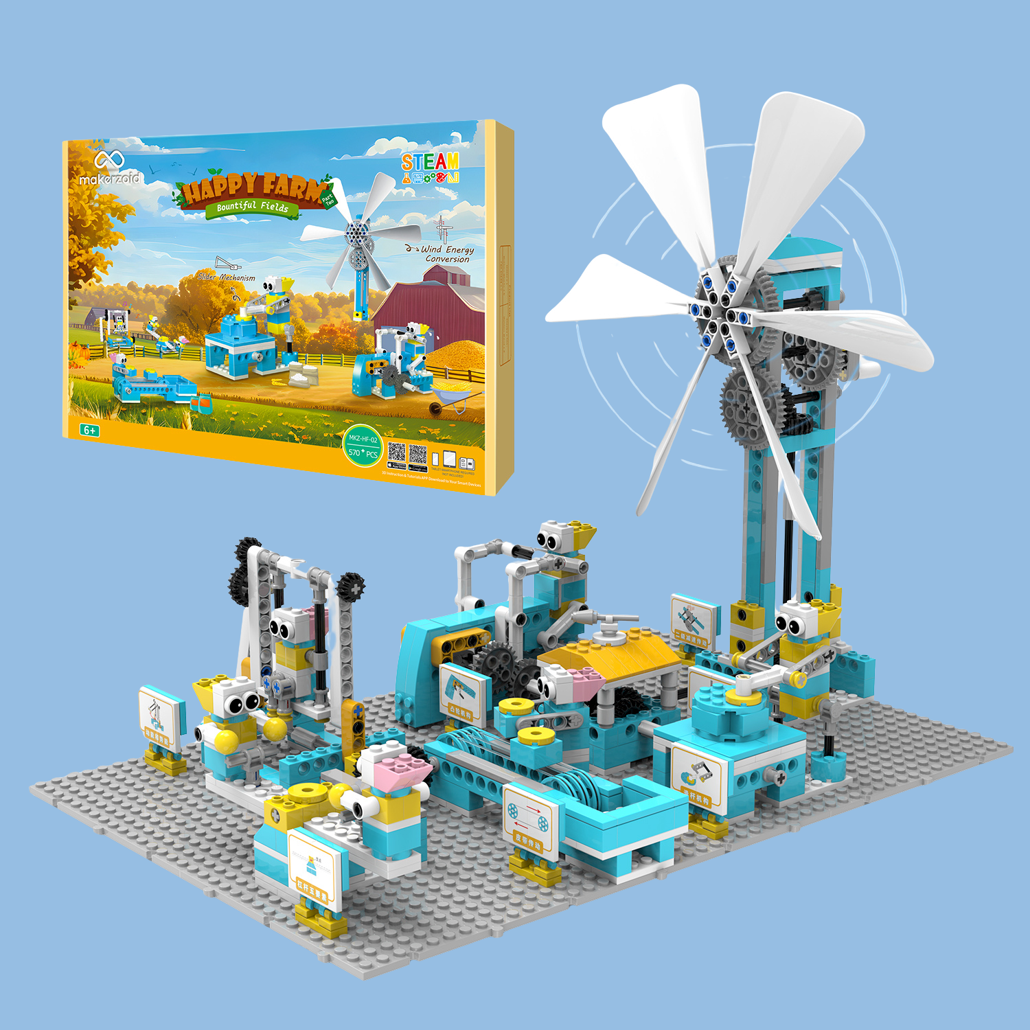 Otra de sus últimas novedades es Happy Farm Bountiful Fields. Este kit ofrece una experiencia enfocada en la ingeniería mecánica y la vida en la granja. Cuenta con 570 piezas de construcción con las que se pueden llevar a cabo más de 40 proyectos. Está diseñado para explorar sistemas de engranajes y estructuras complejas, fomentando el juego sin pantallas y la resolución de problemas en equipo.