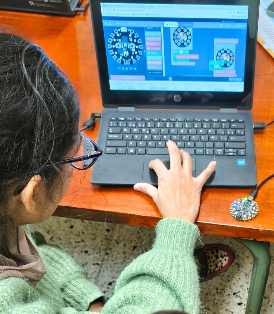 La PlayGround Express es una placa muy vinculada al mundo de los E-textiles y gracias a ella podemos introducir al alumnado en la electrónica y la programación, desarrollar su expresión artística y fomentar la exploración de diferentes materiales.