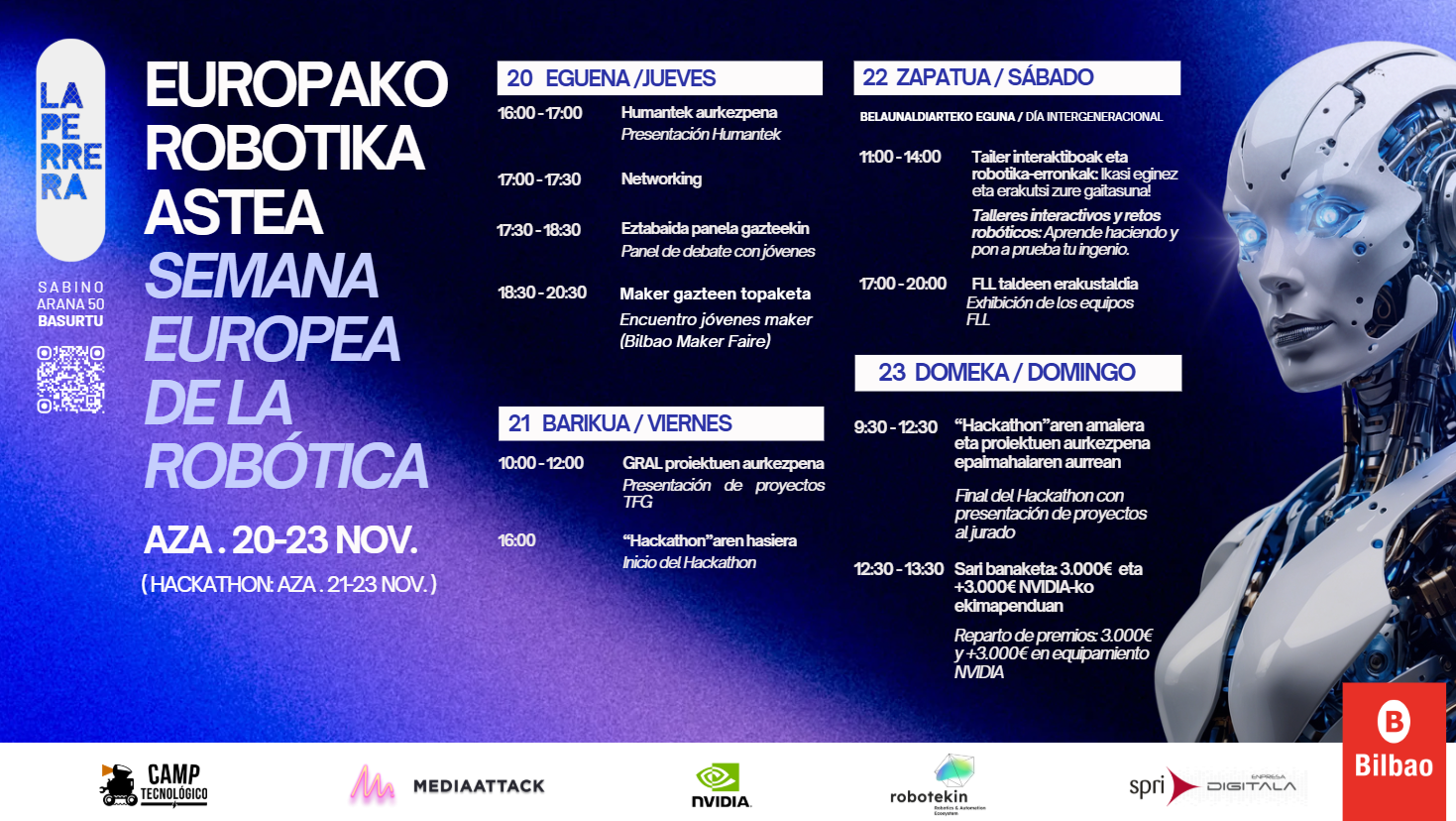 Del 20 al 23 de noviembre, Bilbao se transforma en un punto neurálgico para los amantes de la robótica, con su Semana Europea de la Robótica Bilbao, un evento enmarcado dentro de la Semana Europea de la Robótica (ERW), actividad impulsada por la asociación europea euRobotic.