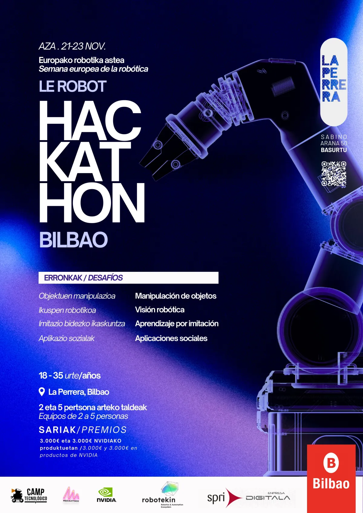 El evento, que tendrá lugar del 21 al 23 de noviembre en el Espacio La Perrera de Bilbao, convoca a desarrolladores, expertos en IA y robótica para diseñar soluciones reales. El premio total asciende a 6.000 € – repartidos en efectivo y productos de NVIDIA – y las propuestas serán evaluadas por un jurado especializado. Esta experiencia brinda a los participantes una oportunidad única de colaborar, innovar y presentar proyectos de alto impacto tecnológico.
