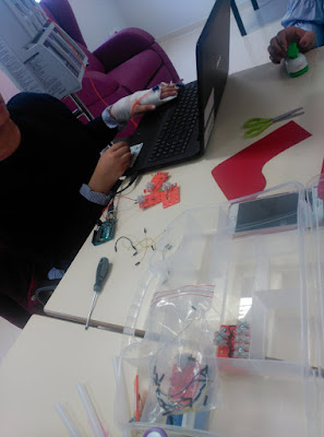 Con los chicos adolescentes (estudiantes de ESO) trabajamos “a pie de cama”. Por ello,los maletines muestra LOG 5040P de entrenador Arduino en minikits S4A de Microlog, nos han venido muy bien para transportar y llevar lo esencial para la práctica.